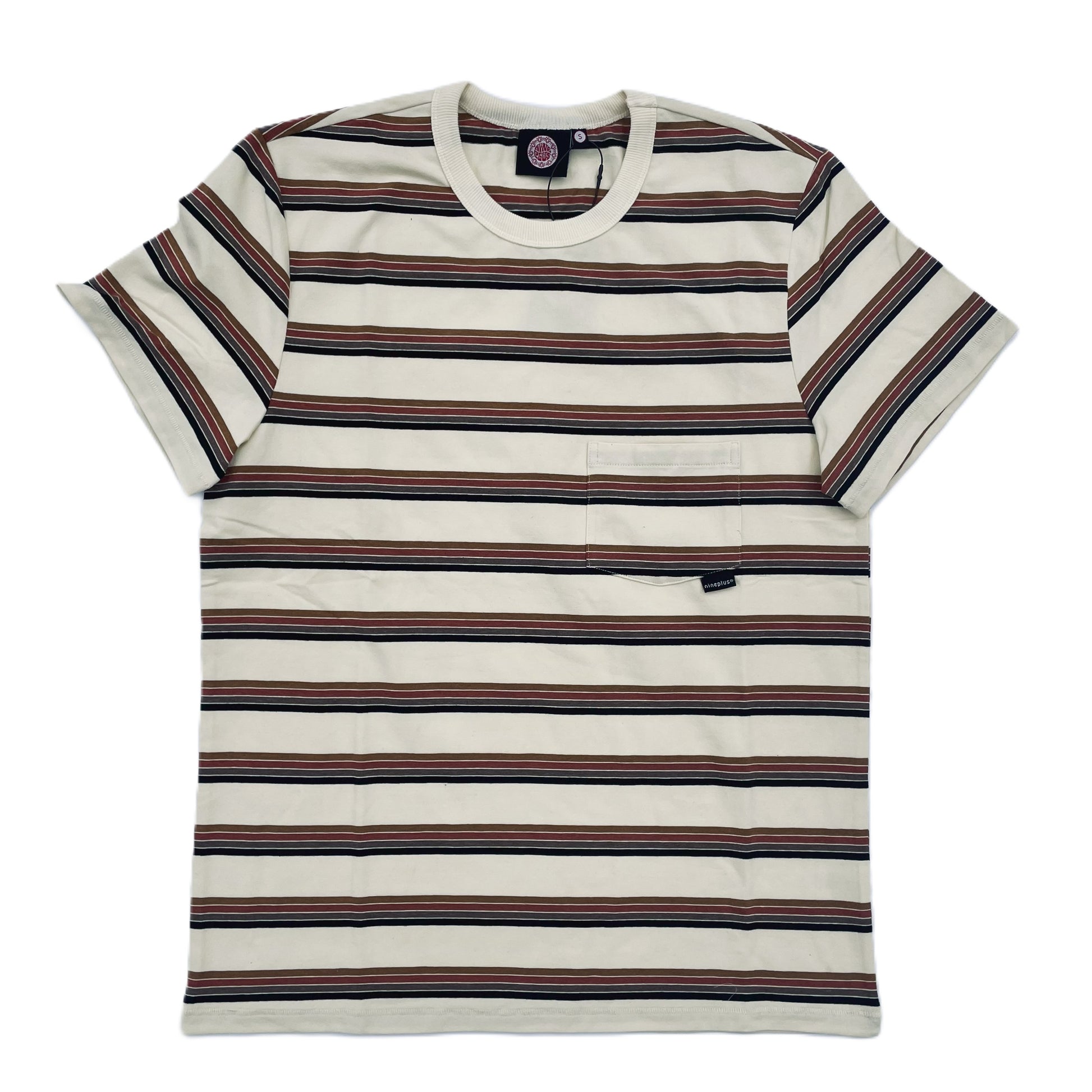 Nineplus 60's stripe t-shirt in Cream + Browns